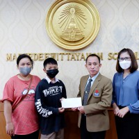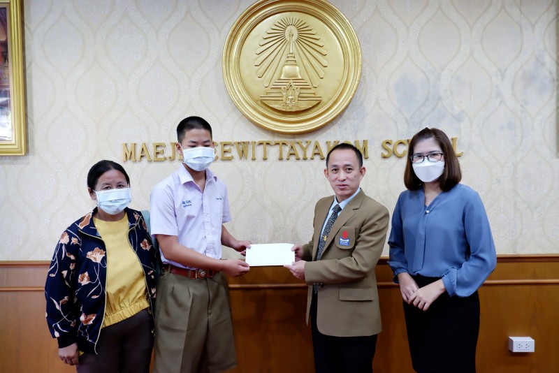 ท่านผู้อำนวยการโรงเรียนแม่เจดีย์วิทยาคม ได้มอบเงินทุนเสมอภาคให้กับนักเรียน